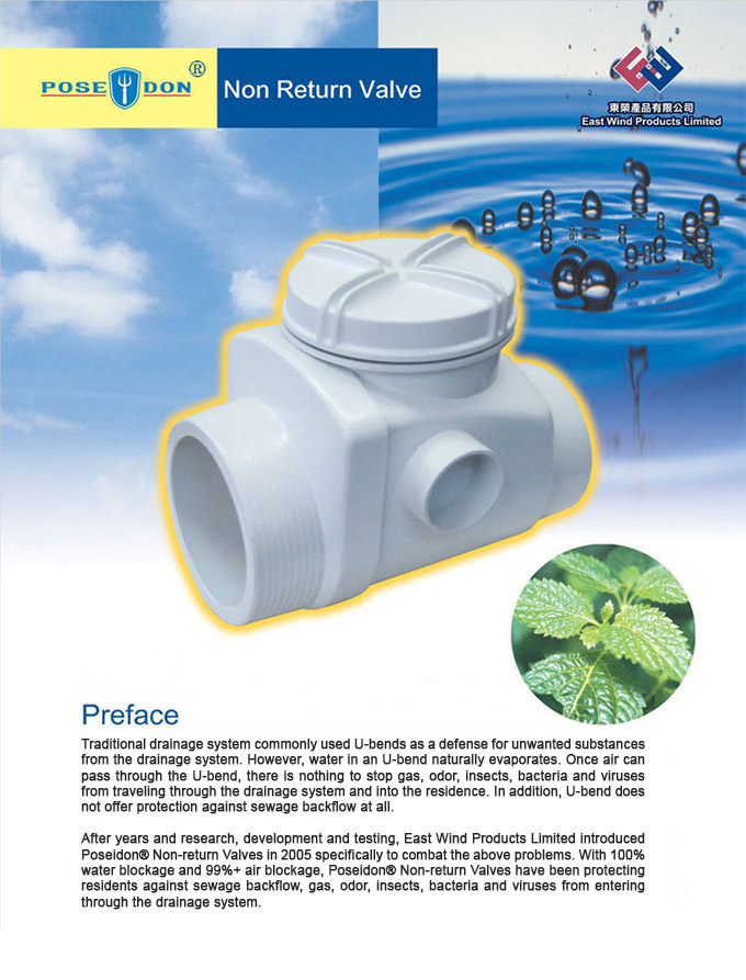 專營防倒流閥門 | 100% 防倒流 100% 防臭味 100% 防細菌 | Since 2005, based in Hong Kong. Poseidon uPVC Non-return Valves have been preventing sewage backflow, odour, insects gas, bacteria and viruses.